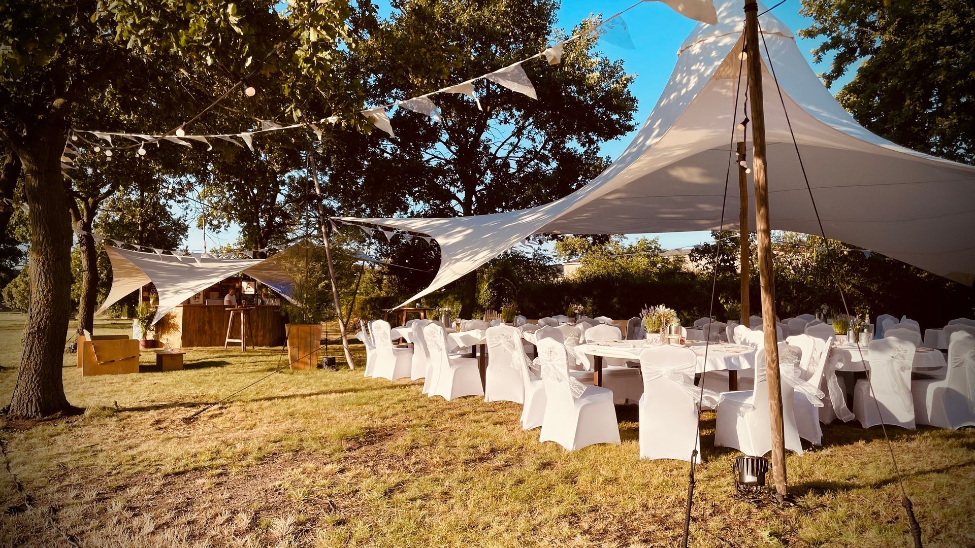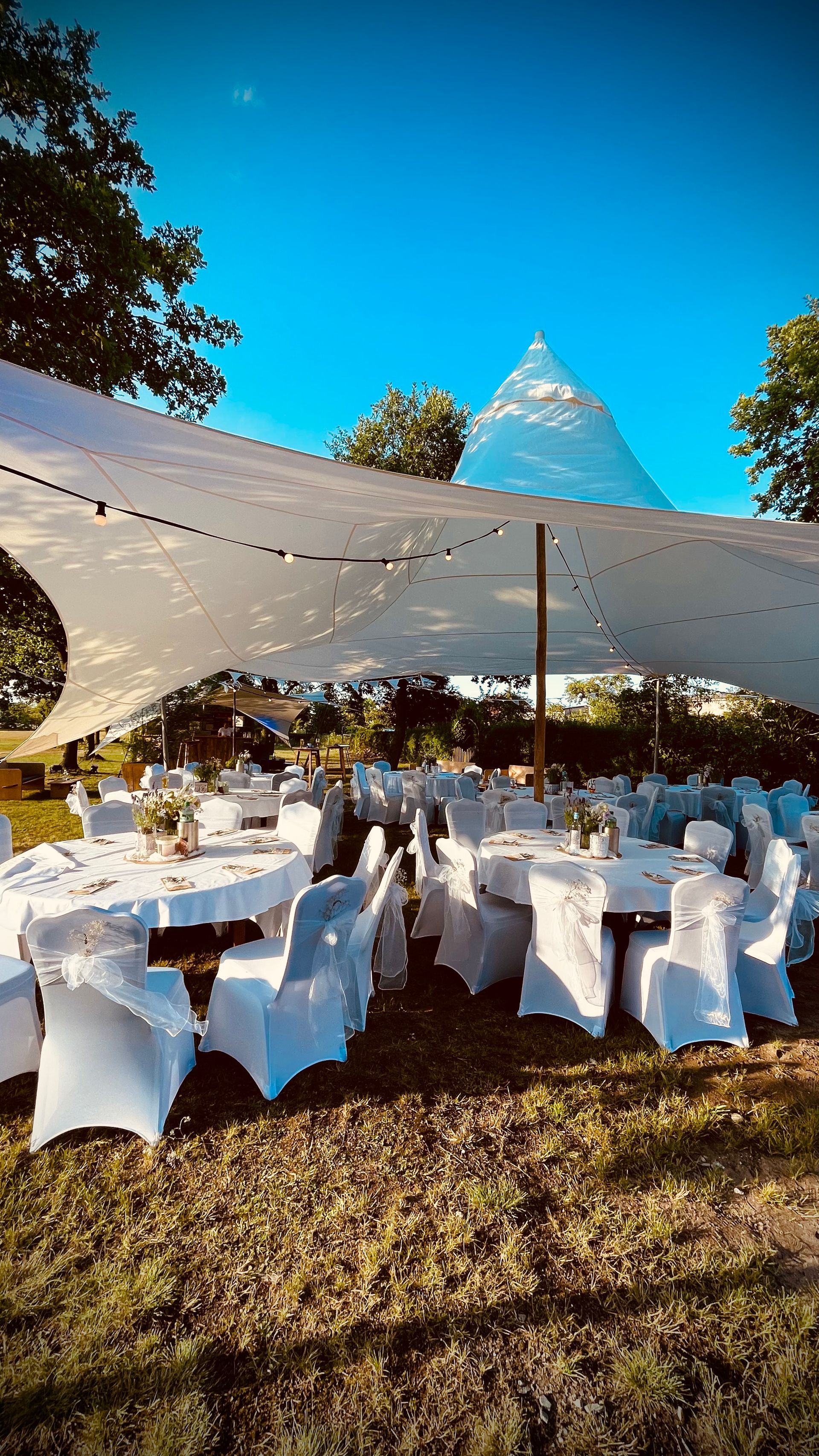 Sonnensegel spenden nicht nur Schatten, sie sind auch Regen und Sturmfest. Wir finden, eine dekorative Form der Überdachung und Zeltvariante. Mit diesen leichten und flexiblen Zeltmodellen sind wir in der Lage, Euch eine maßgeschneiderte Lösung für Eure Veranstaltung und euer Event anzubieten.