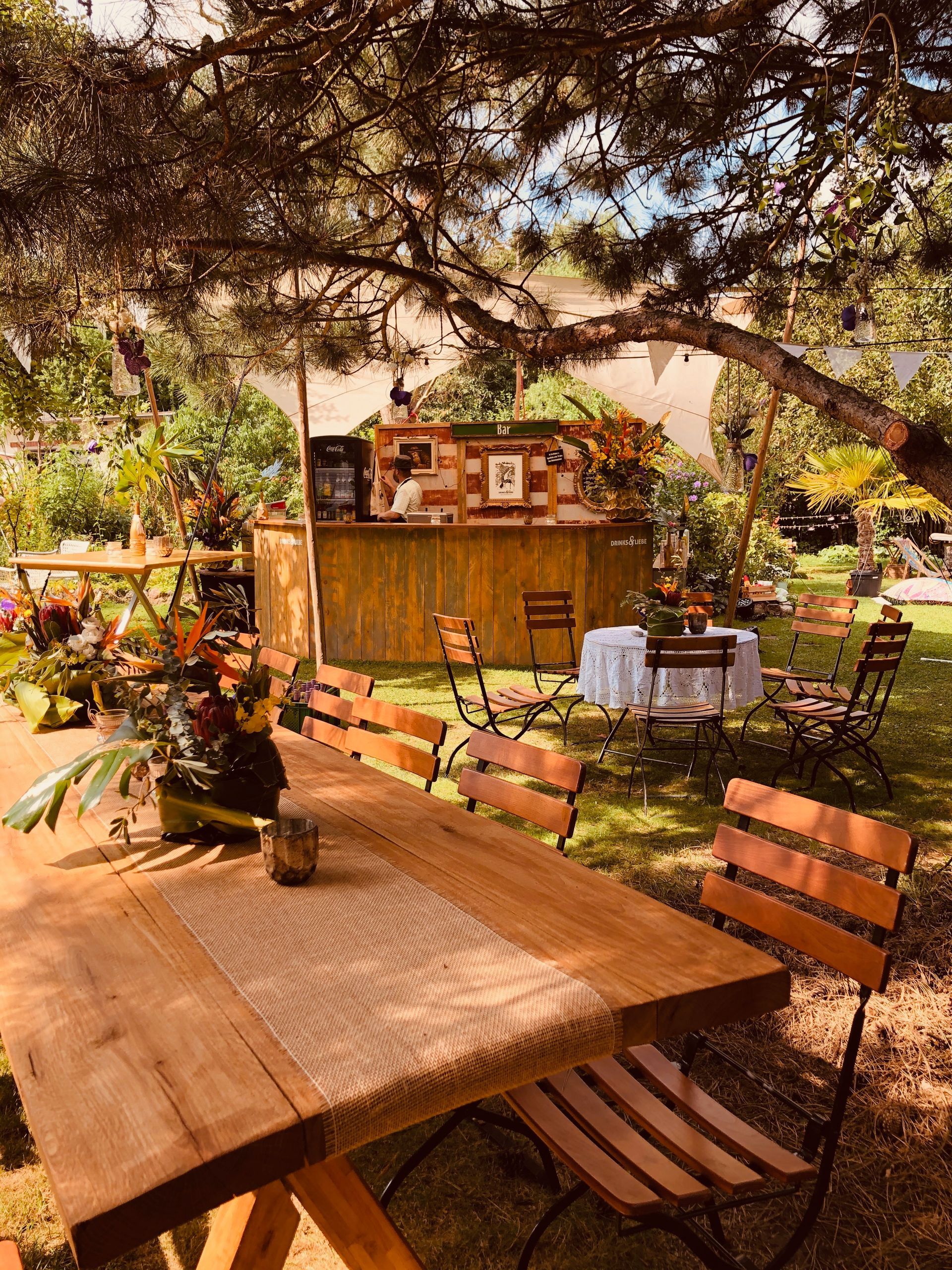 Mit stilvollem Lichtinstallationen schaffen wir ein besonderes Ambiente. Plötzlich hängen Spiegelkugeln und Kronleuchter in eurem Garten und Ihr genießt mit Euren Gästen an unserer Drinks und Liebe Bar Cocktails und andere, mit Herz gemachte Getränke.